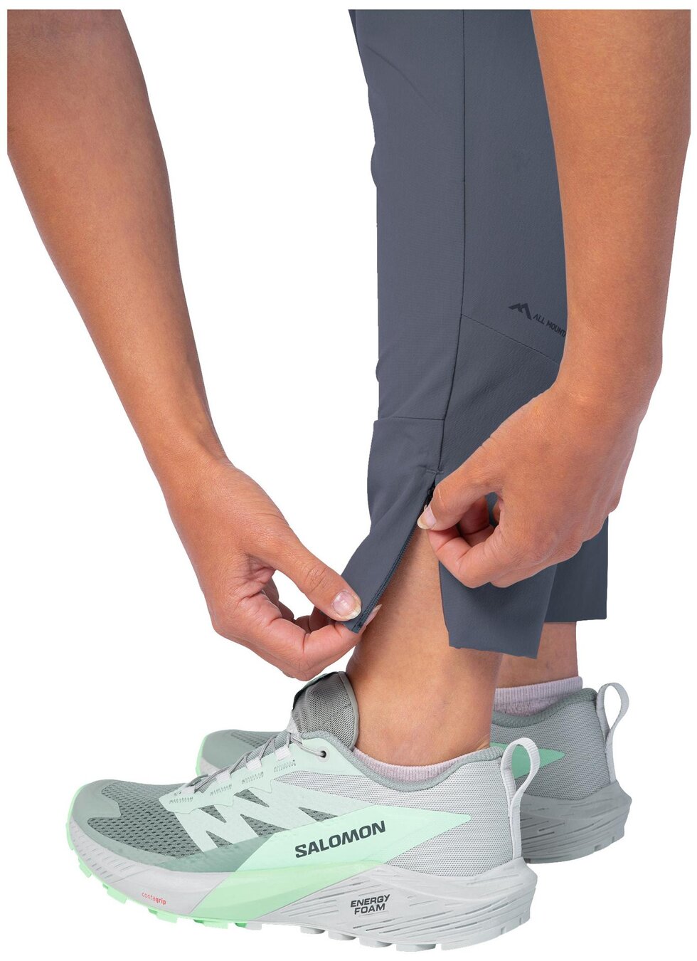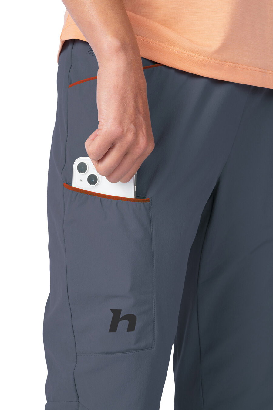 Spodná časť nohavíc prechádza do zúženej nohavice s možnosťou rozšírenia vďaka rozparku so skrytým zipsom. Nohavice majú dve priestranné predné vrecká a jedno stehenné vrecko. Dizajnovým prvkom sú vnútorné vrecká s potlačou.