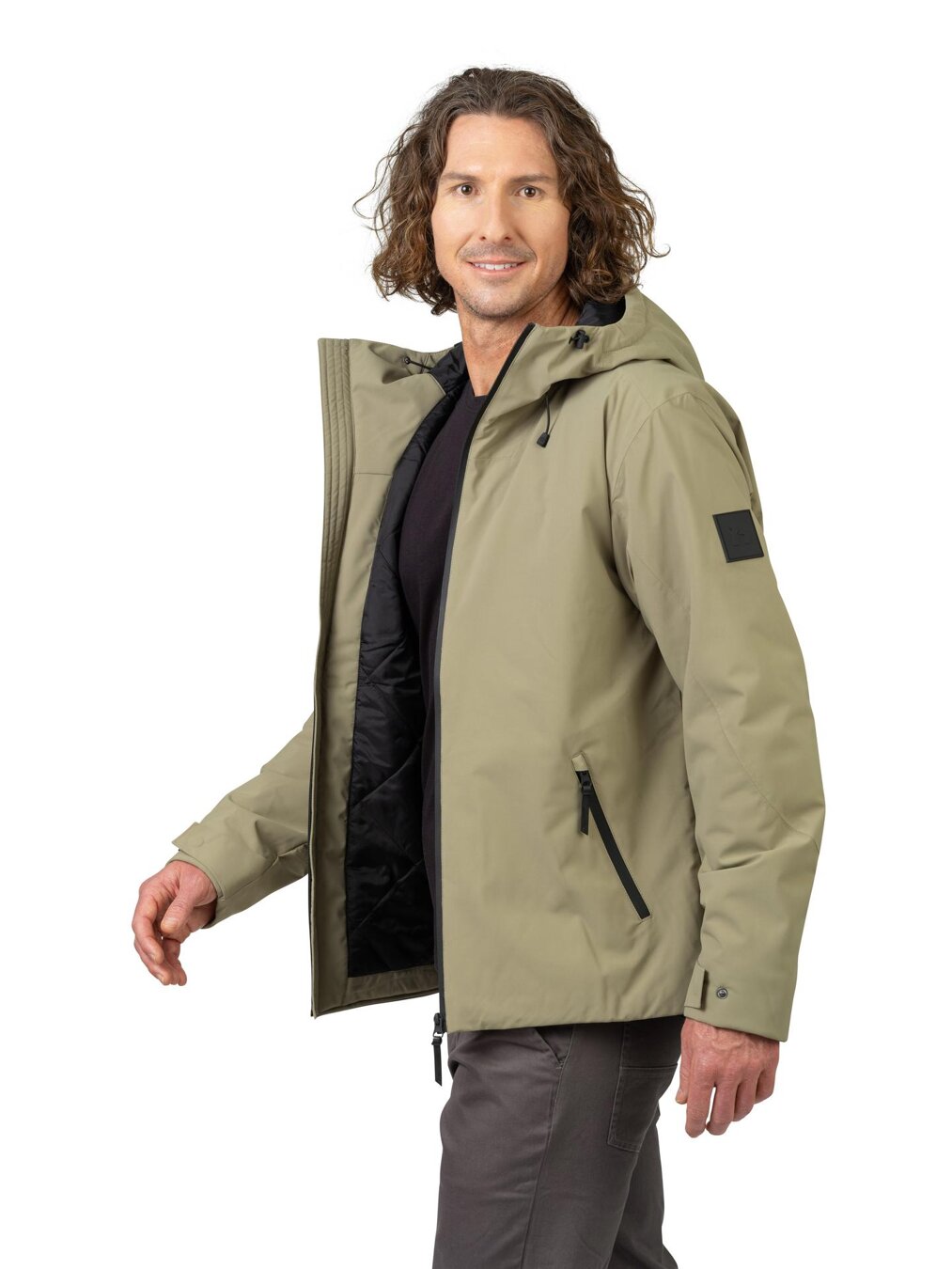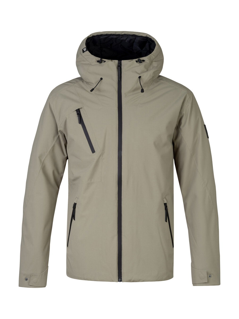 Bunda má kapucňu s reguláciou, dve hlavné a jedno hrudné vrecko s vodoodolnými zipsami. Celkovú nepremokavú vlastnosť bundy dopĺňa aj vodoodolný hlavný zips. Rukávy je možné prispôsobiť sťahovaním na pätku s cvokom, tak ako spodný kraj bundy. Naši dizajnéri sa rozhodli pre pohodlný strih a jednofarebný dizajn.